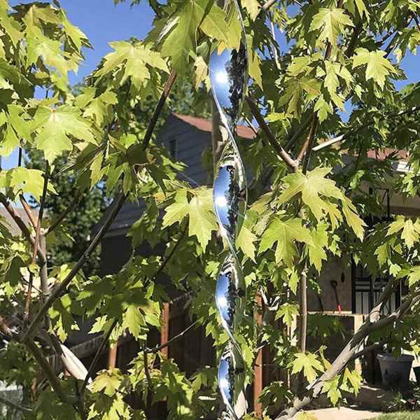 В комплекте отпугивателя находится 6 стержней, каждый из которых немного закручен в спираль. Выполнены они с блестящей серебристой поверхностью, благодаря чему отлично отражают солнце, и отпугивают пернатых "гостей". Так и достигается своеобразный отпугивающий эффект. Даже небольшого потока ветра вполне достаточно, чтобы создать даже малейшие колебания конструкции. Многочисленные блики обеспечивают дополнительную защиту от грызунов.